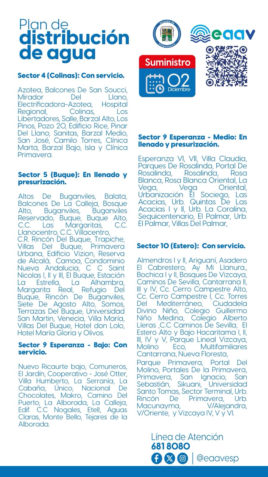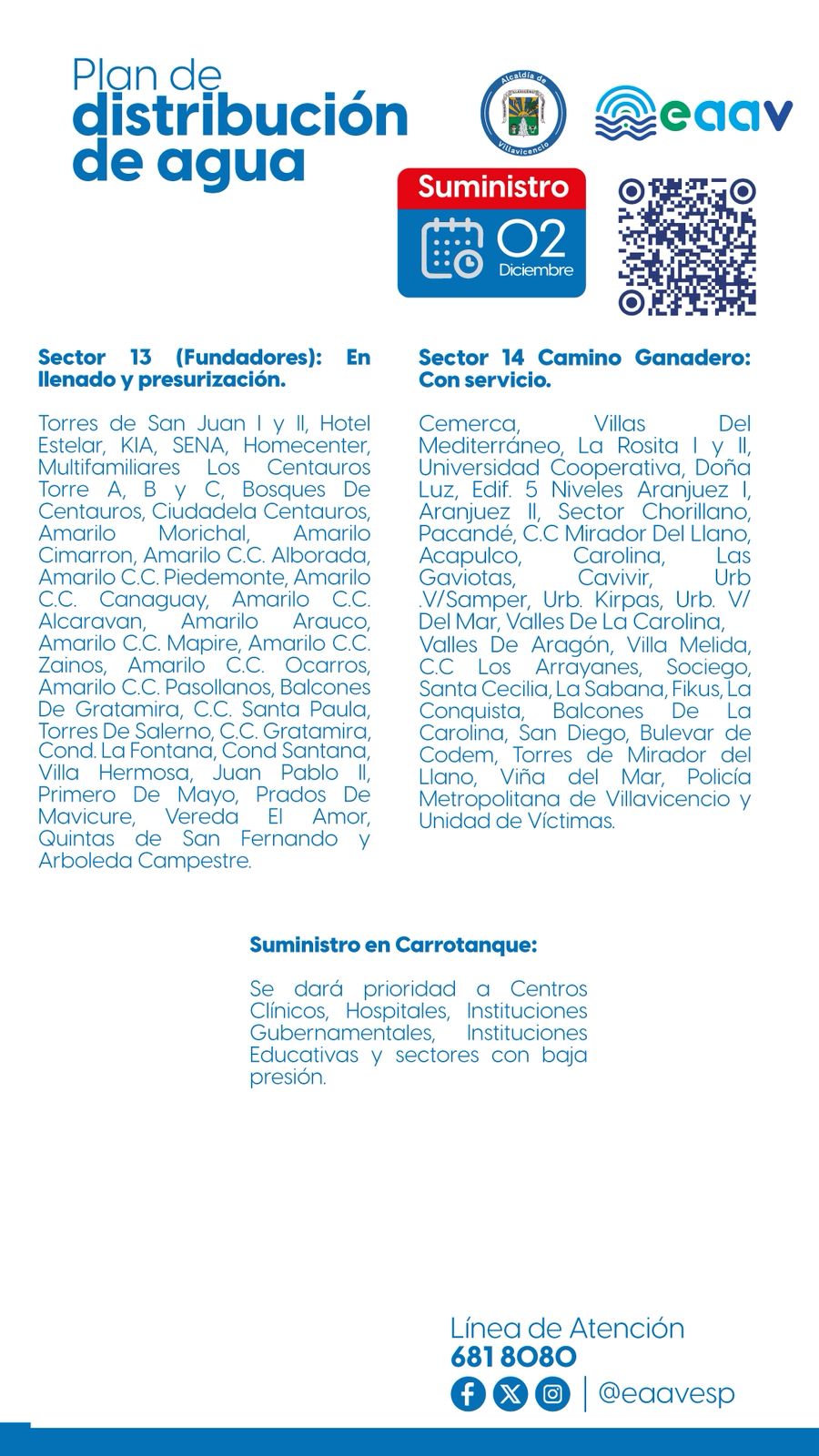Hoy, la EAAV restablece el servicio en varios sectores de Villavicencio, por lo que este es el listado oficial de EAAV hoy en Villavicencio: