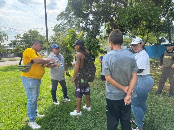 Durante el recorrido, el equipo social realizó procesos de caracterización de la población, además de brindar información sobre los programas y servicios institucionales disponibles para el restablecimiento de derechos y el acompañamiento social.