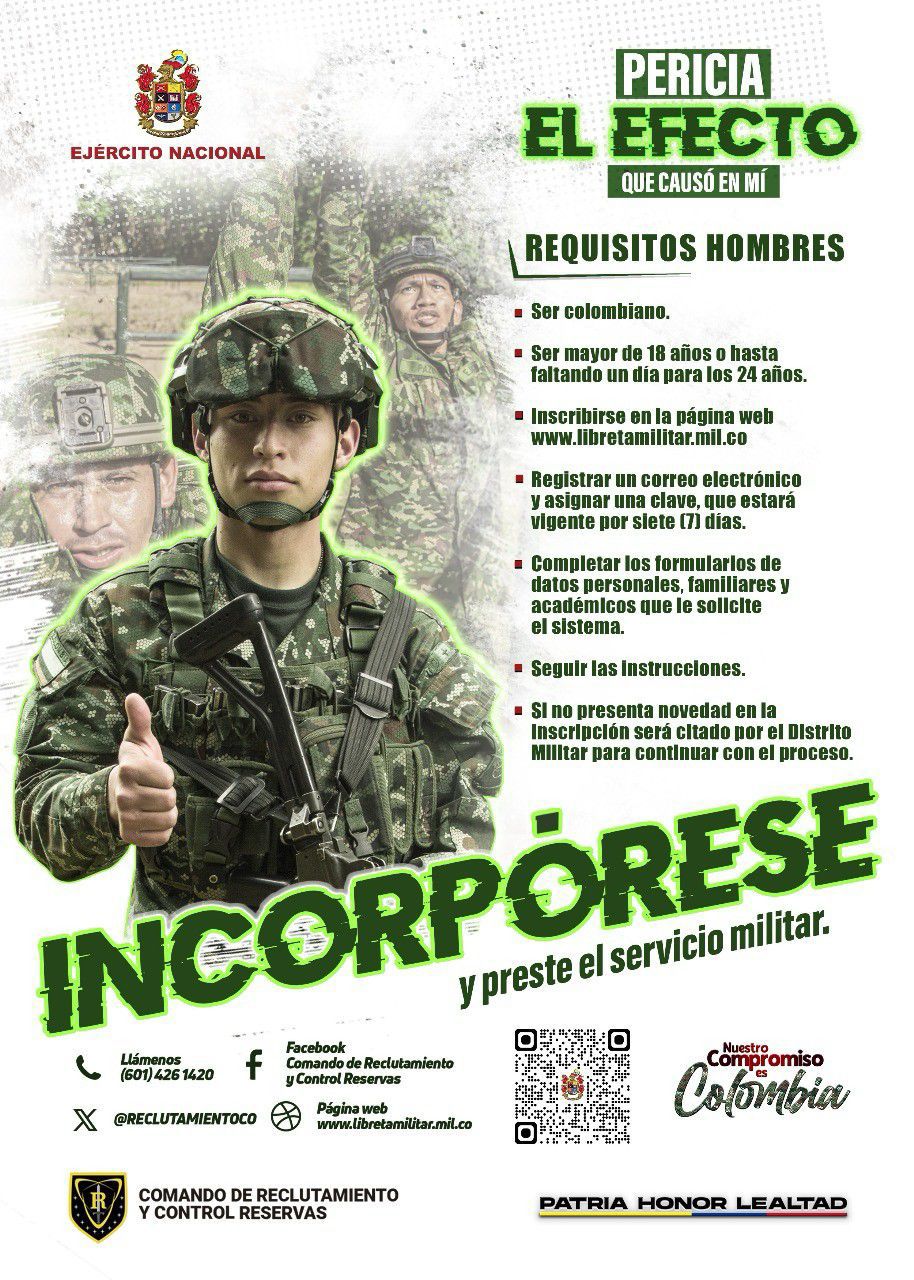 La convocatoria está dirigida a hombres y mujeres entre los 18 y hasta el día anterior a cumplir los 24 años, conforme a lo establecido en la Ley 1861 de 2017. Está orientada a quienes deseen prestar su servicio militar y vivir una experiencia transformadora, construyendo disciplina, liderazgo y sentido de nación.
