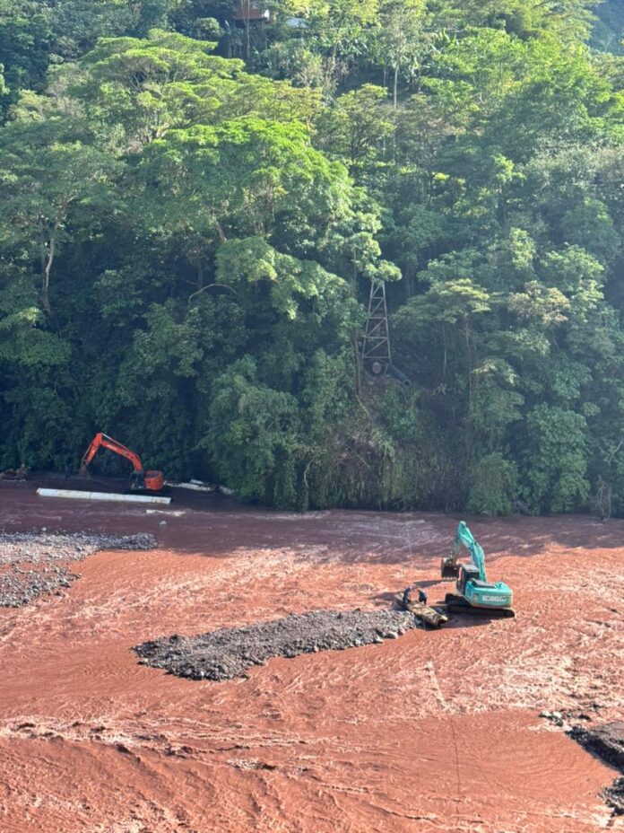 1.- Punto San José: hay maquinaria pesada sobre orugas, laborando en el lecho del río Guatiquía.
