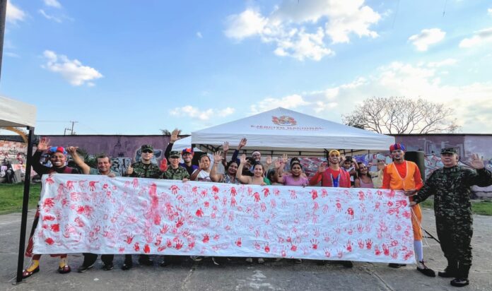 A través de actividades lúdicas, culturales y pedagógicas como actos circenses y trova, se promovieron valores de convivencia, respeto y construcción colectiva. Durante la actividad, las familias elaboraron carteles con manos rojas como acto simbólico de rechazo al reclutamiento, reafirmando su compromiso con la defensa de la vida y la libertad.