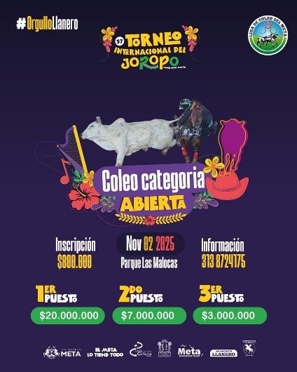 El evento, que se llevará a cabo en el coliseo de encierro de ganado de Las Malocas, contará con la participación de la Liga de Coleo del Meta y de exponentes del trabajo de llano que mantienen viva la esencia del campo y las raíces del pueblo llanero.