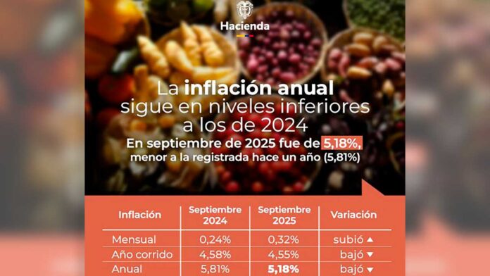 Urdinola señaló que el último resultado anual superior al observado en septiembre de 2025 se presentó en febrero pasado, cuando la inflación alcanzó un 5,2%.