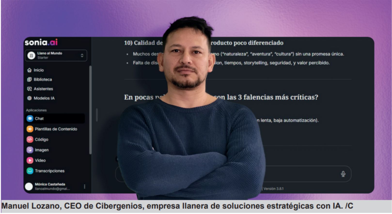 Para Lozano, herramientas como Sonia AI, desarrollada por Cibergenios, permiten ofrecer contenidos profesionales multilingües para atraer turistas internacionales sin incurrir en altos costos de producción.