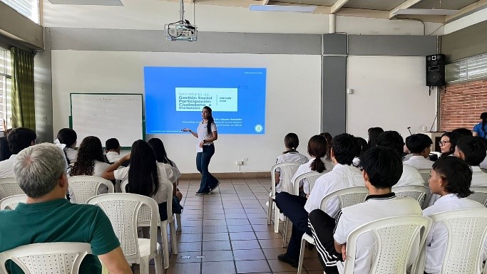 Posteriormente, 40 estudiantes de grado décimo recibieron orientación por parte de la Dirección de OSIGD en temas relacionados con la prevención del consumo de sustancias psicoactivas (SPA) y la educación sobre orientación sexual.