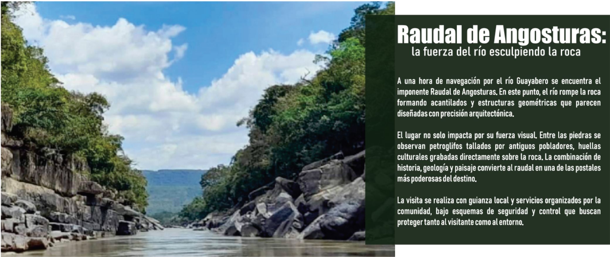 Henry Quevedo destaca que la oferta turística de La Macarena ha consolidado un modelo de ecoturismo planificado, con control de capacidades de carga, regulación de embarcaciones y guías capacitados. Esto permite que varios de sus atractivos estén disponibles durante todo el año, diversificando la oferta con productos como “Macarena en Verano”, que opera Ecoturismo Macarena -su empresa-, permitiendo vivir la magia de otros lugares inolvidables con experiencias únicas.