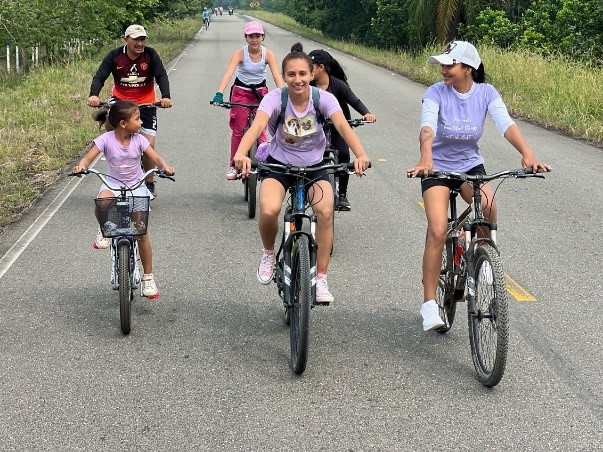 El recorrido, que fue de 30 kilómetros, partió del parque central y culminó en el centro poblado Campo Alegre. La ruta permitió la integración de toda la familia y sirvió para reactivar el uso de la bicicleta, para lo cual los habitantes sacaron cerca de 100 ‘caballitos de acero’, enviando un mensaje contundente a toda la población para que se elimine la violencia en contra del género femenino.