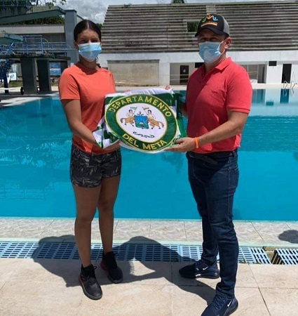 La nadadora del Meta Liz Pesca, recibió la bandera del departamento de manos del director de IDERMETA, Fabián Torres y viajará al Mundial de natación a realizarse en Italia, luego de ser convocada por la Federación Nacional, para integrar la nómina que representará a Colombia.