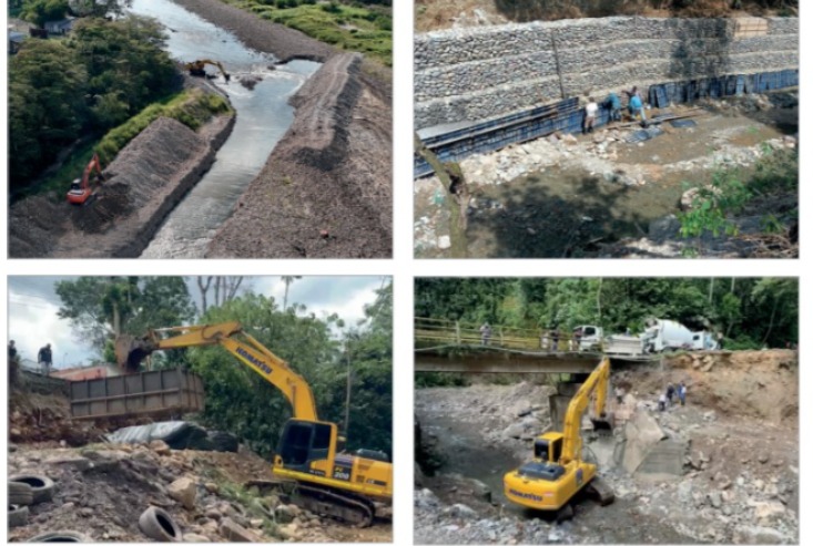 En las obras de mitigación ejecutadas y descritas a continuación, se cuenta un total de 2.344 m3 de gaviones construidos en los diferente sectores; 1.172 mallas para gavión llenadas, 62 geocontenedores tr 4.000 llenados y 92 m³ de concreto bombeado en el total de las obras: