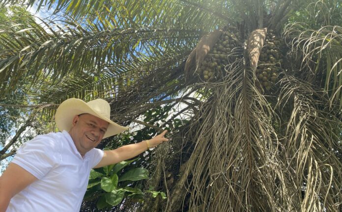 En la actualidad, las palmas de aceite tradicionales ofrecen un rendimiento de extracción de aceite del 18 al 20%, mientras que la Macaúba apunta a superar el 28-30%, con una proyección de hasta 30 toneladas por hectárea. Esta promesa productiva, combinada con su bajo impacto ambiental, posiciona al cultivo como un referente en la nueva era del agro. “La Macaúba es amigable con el medio ambiente porque es de acá. Es silvestre, no degrada el suelo y su ciclo de renovación permite regenerar la producción cada 20 años”, comentó Reinel Gaitán durante la entrevista. Además, destacó que esta palma no exige fumigaciones agresivas, ni desmonte de bosques, lo que permite conservar los ecosistemas locales.
