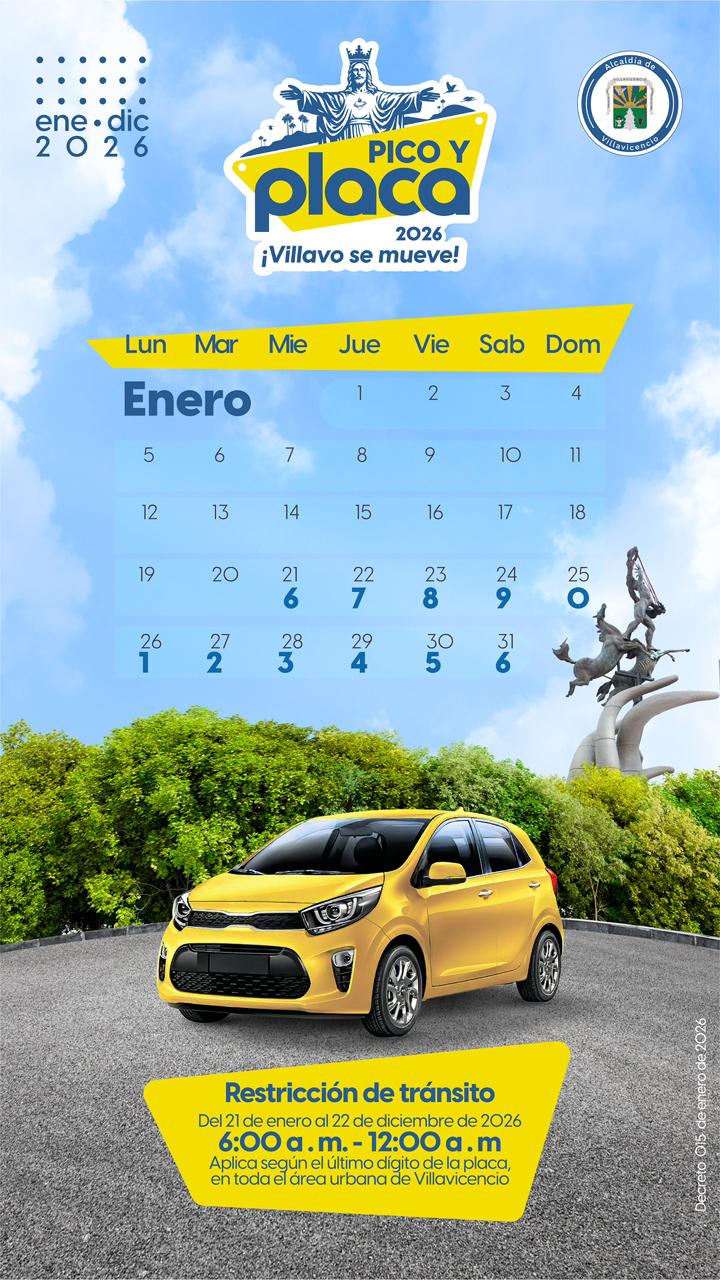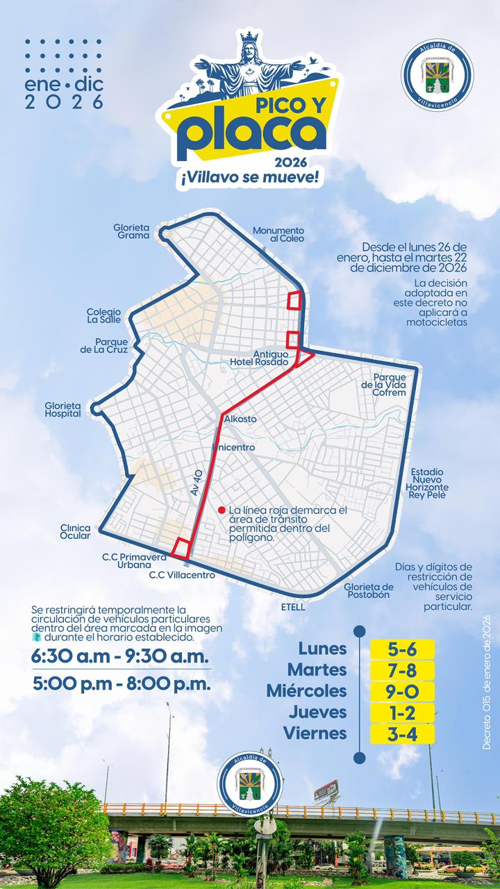 Compartimos las disposiciones del Decreto 015 de 2026, mediante el cual se establece el pico y placa para vehículos particulares y taxis en la ciudad.