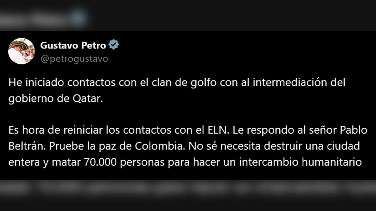 El jefe de Estado manifestó en su cuenta de la red social X que: “He iniciado contactos con el clan del golfo, con la intermediación de Catar. El anuncio lo hace apenas dos meses después de haber informado la reactivación de las negociaciones con esa estructura criminal, con fuerte presencia en varias regiones del país.