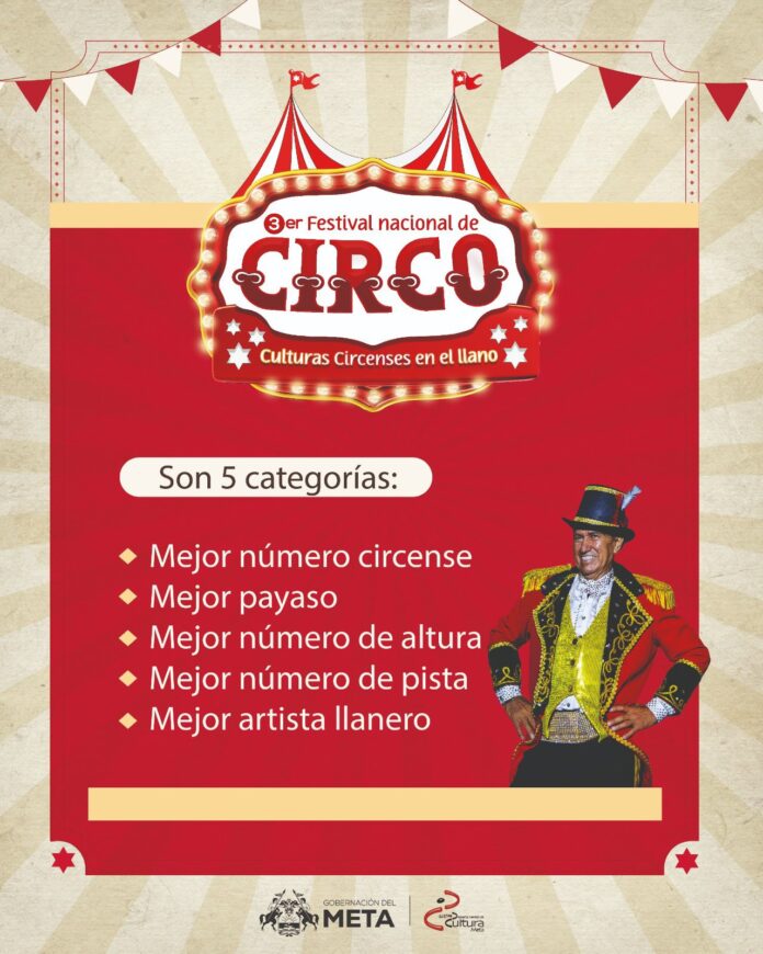 El Instituto Departamental de Cultura del Meta (IDCM), anunció que ya están disponibles las bases y requisitos para participar en el Tercer Festival Nacional de Circo “Culturas Circenses en el Llano”, que se realizará en Villavicencio del 11 al 14 de diciembre de 2025. Los documentos oficiales ya se encuentran disponibles para consulta y descarga en www.culturameta.gov.co sección Convocatorias.