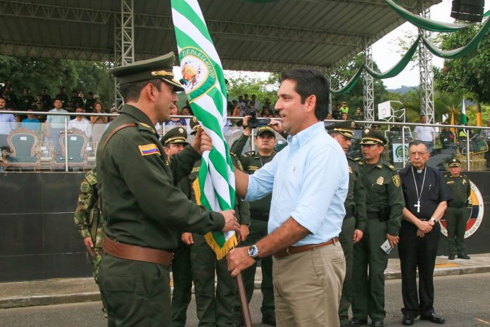 En la plaza de armas de la Escuela de Carabineros Eduardo Cuevas García, en el barrio El Triunfo en Villavicencio, se cumplió la ceremonia de transmisión de mando del Departamento de Policía Meta (Demet), a la que asistió el gobernador Juan Guillermo Zuluaga y Víctor Bravo, secretario de Gobierno y Seguridad del departamento.